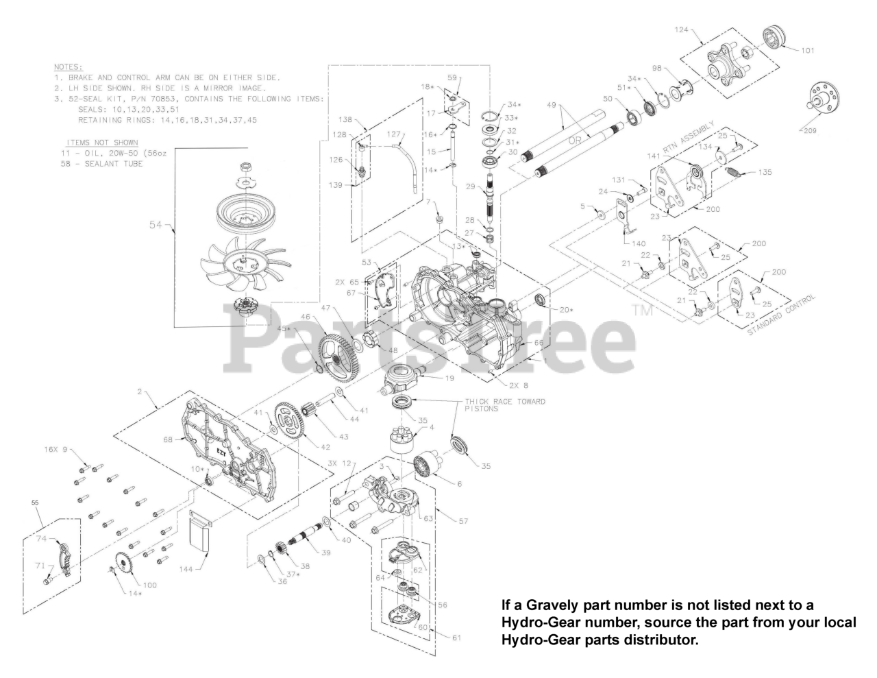 Note: INCLUDES ITEMS 119, 120, 121, 122, 123 Hydro-Gear p/n 72137