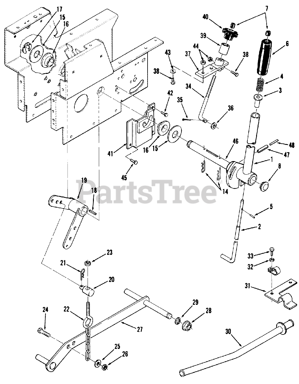 Note: EARLY PRODUCTION MODELS USED 107391 LIFT LEVER (WELDED CONSTRUCTION).