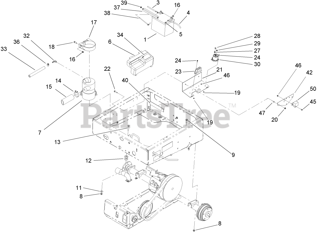 Drivetrain Mounting, Battery and Air Cleaner Assembly Parts Diagram
