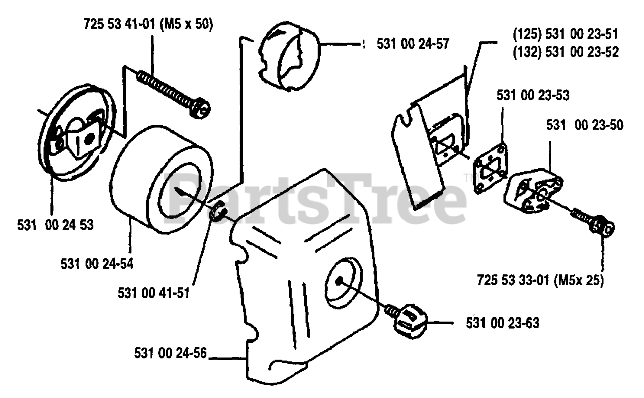 125 RD - Husqvarna String Trimmer (1993-04) Muffler w\Cover Parts Diagram
