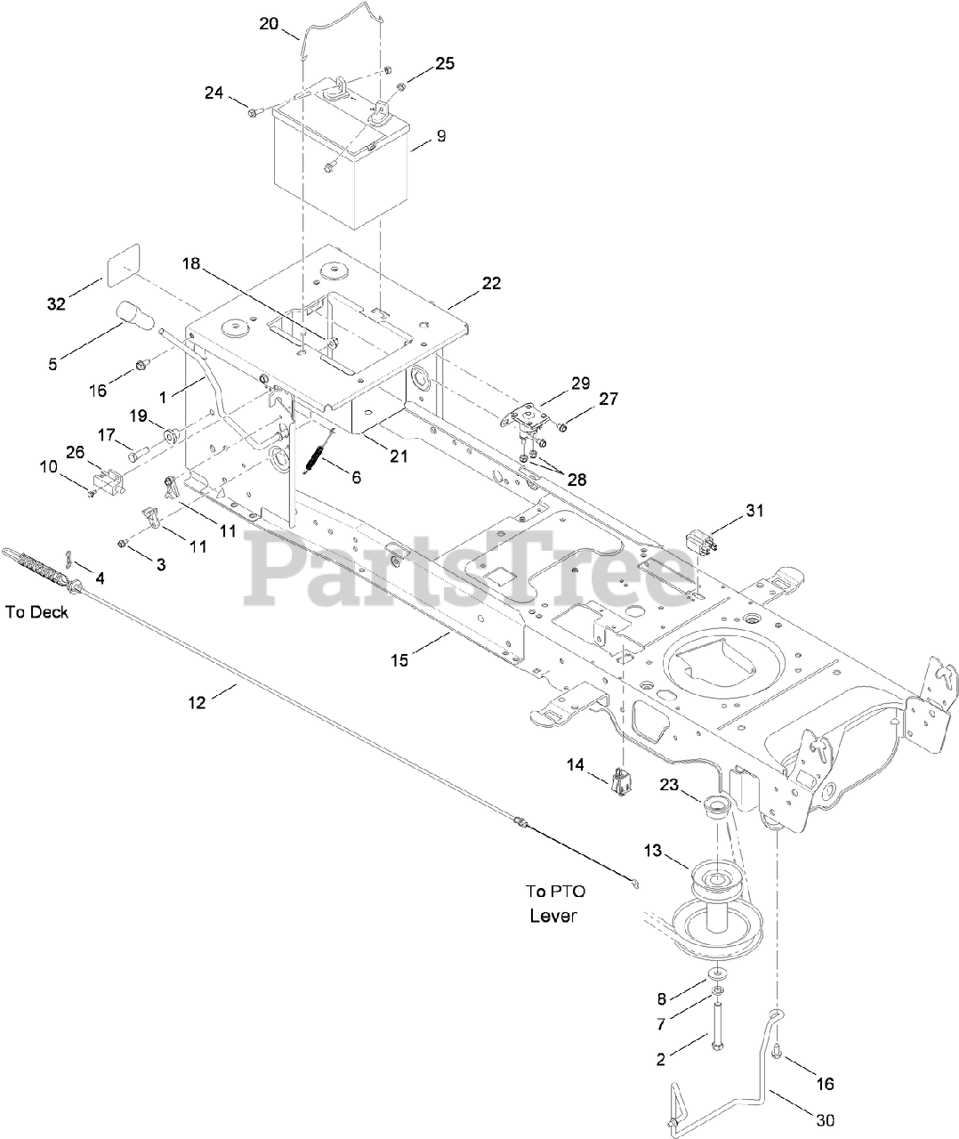 Frame, Battery and PTO Assembly Parts Diagram