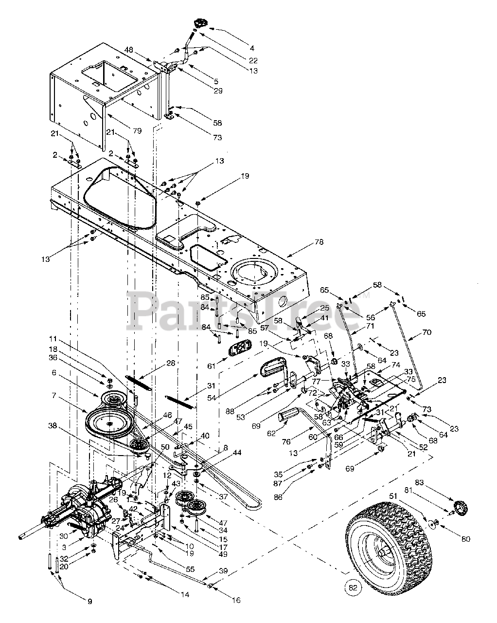 Drive, Controls, Wheels Rear Parts Diagram