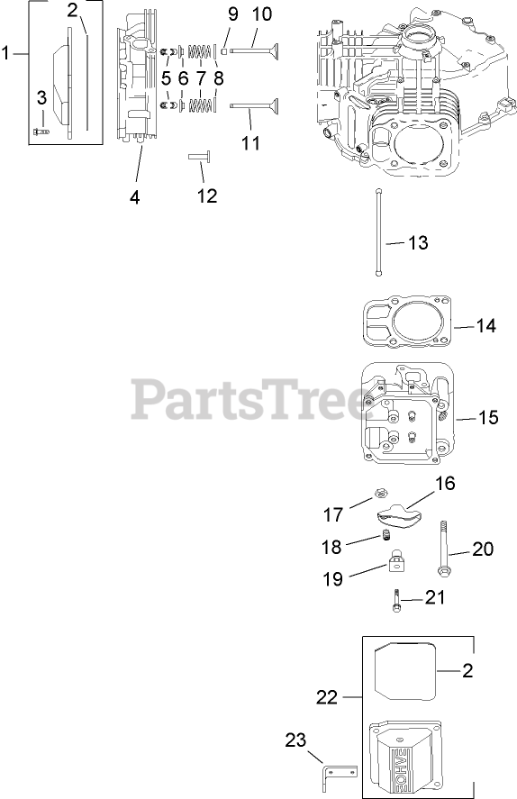 Head, Valve and Breather Assembly Kohler SV720-0017 Parts Diagram