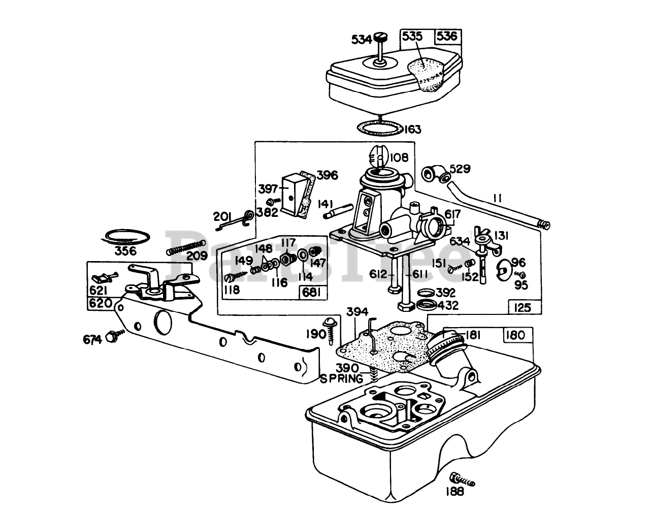 Carburetor Assembly Model 390065 For 21" Hand Propelled Model 16155 For 21" Self-Propelled Model 16287 Parts Diagram