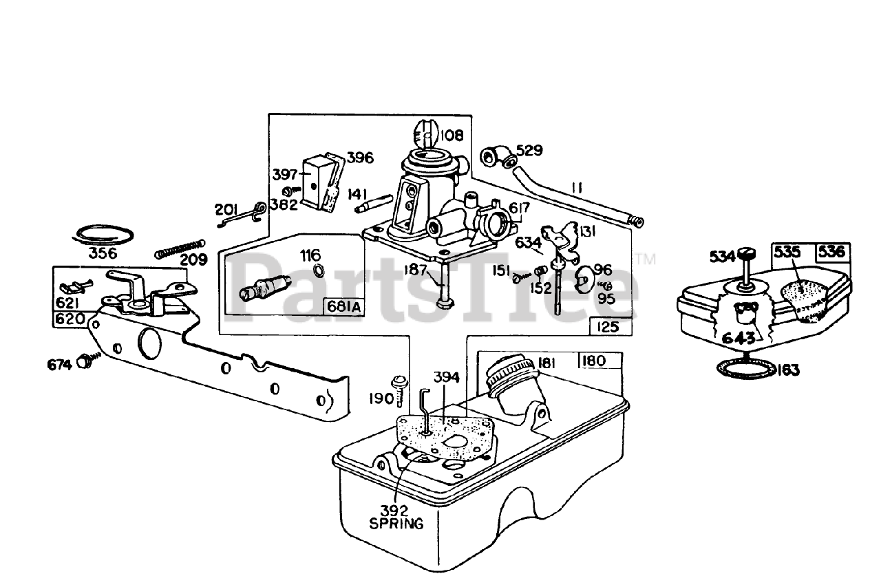 Briggs Stratton Carburetor Assembly Model 93508-0195-01 For 21" Hand Propelled Model 16310 Parts Diagram