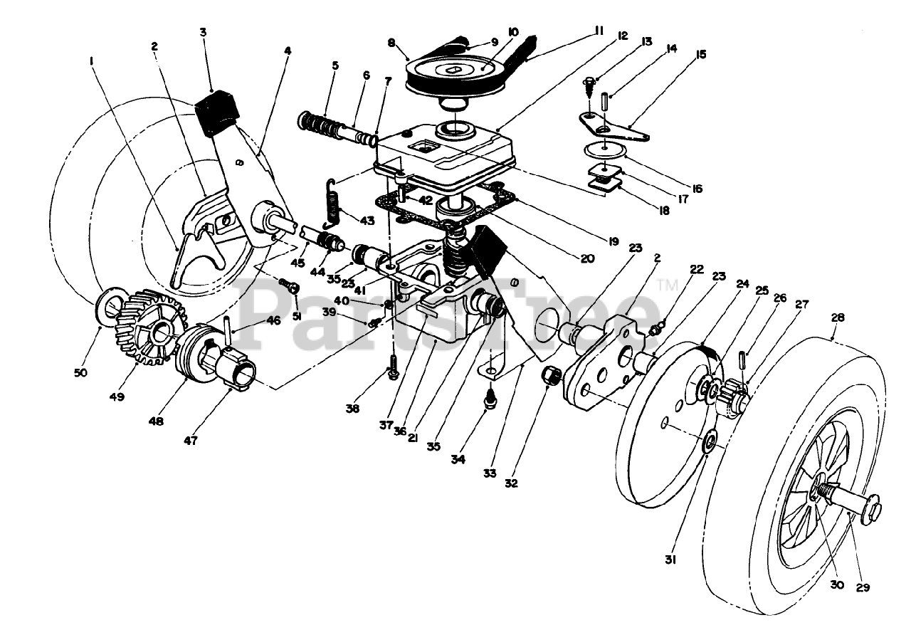 16401 - Toro Walk-Behind Mower (SN: 010000001 - 019999999) (1991) Gear Case Assembly Parts Diagram