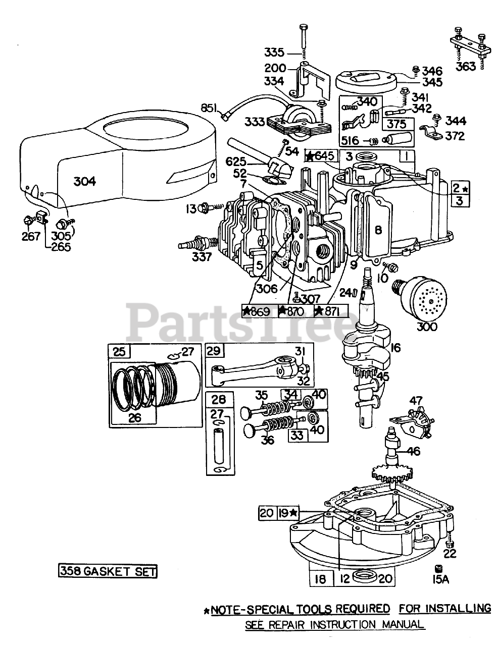 Note: Indicates items included in Gasket Set part no. 298989
