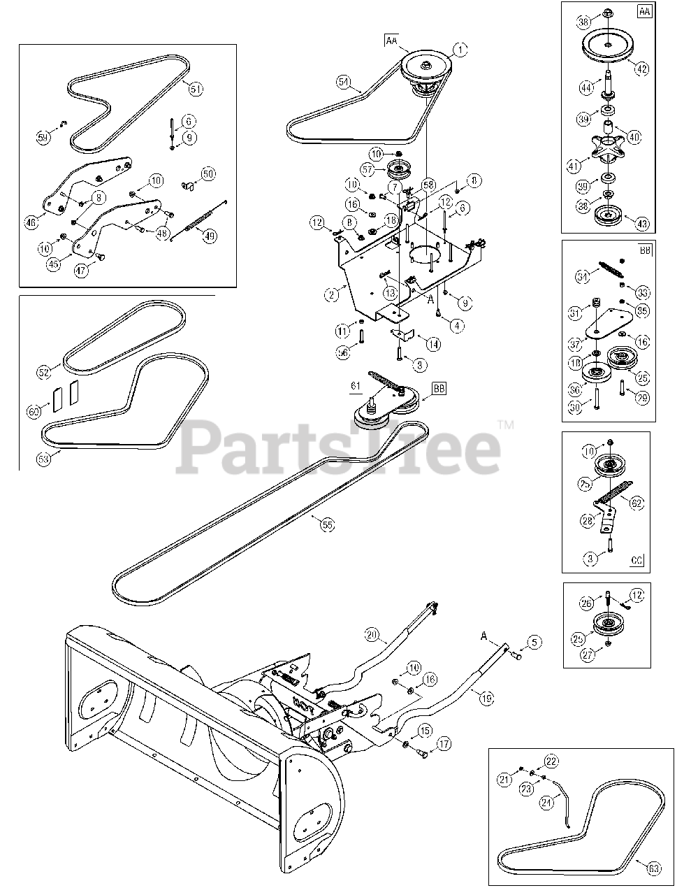 Note: (Refer to Snow Thrower Owners Manual for your tractor's applicable upper v-belt)