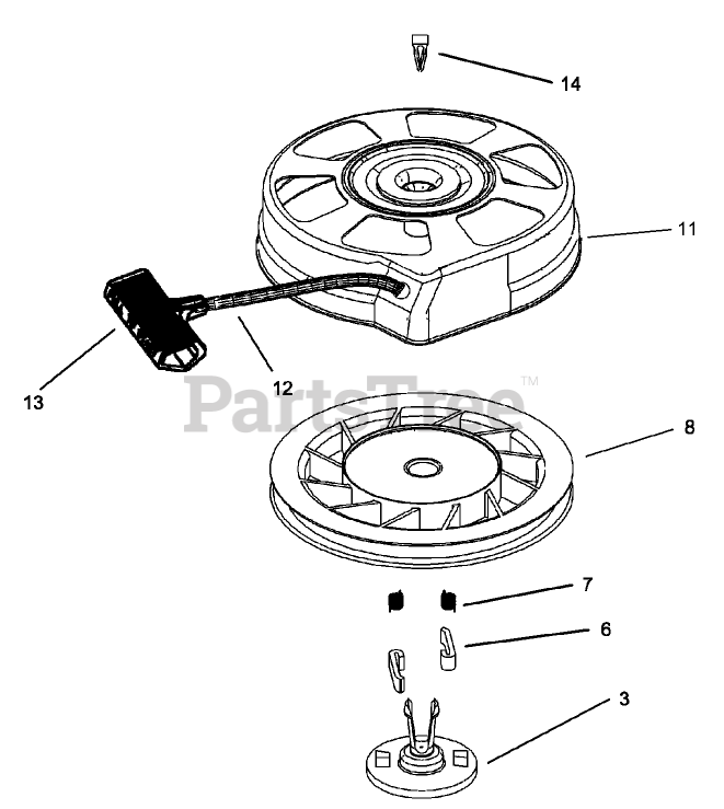 20001 - Toro 22" Recycler Walk-Behind Mower (SN: 240000001 - 240999999) (2004) Recoil Starter Assembly No. 590739 Tecumseh LV195-362003B Parts Diagram