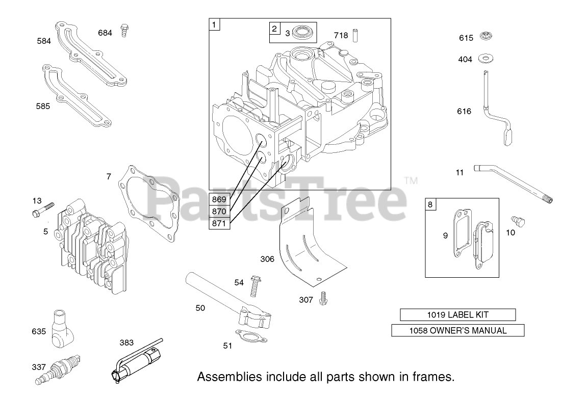 Cylinder Assembly Engine Briggs and Stratton Model 124K02-0110-B1 Parts Diagram
