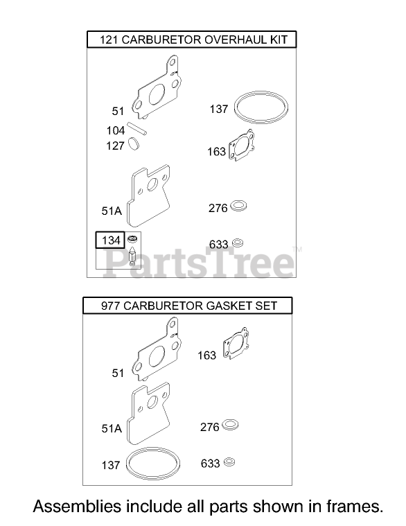 Note: Included in Carburetor Overhaul Kit-Ref. 121.