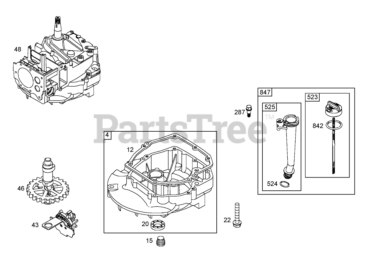 Crankcase Assembly Briggs and Stratton 125K02-0189-E1 Parts Diagram