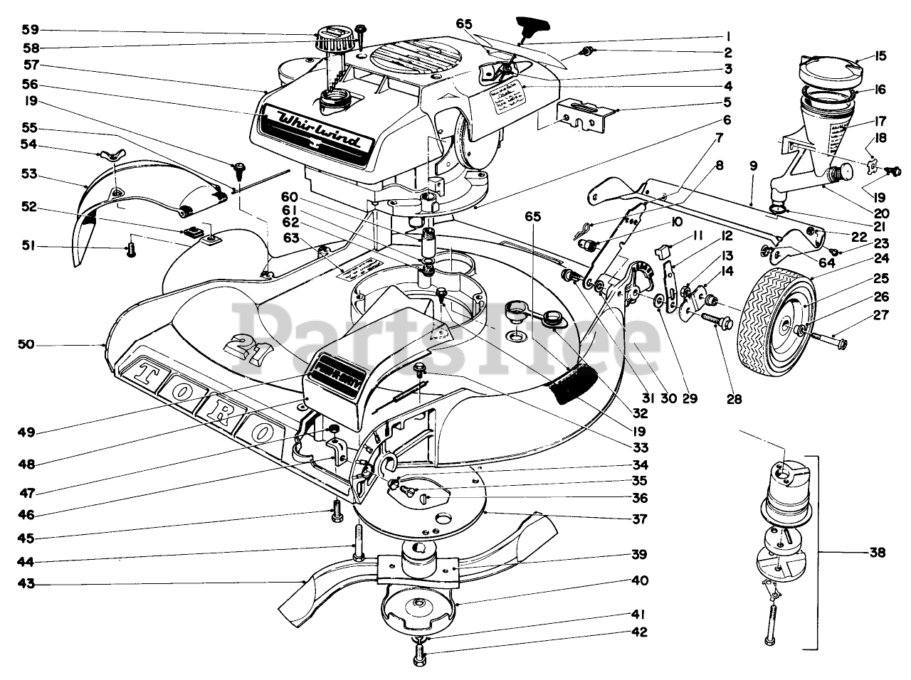 20223 - Toro Whirlwind Walk-Behind Mower (SN: 009000001 - 009999999) (1969) 21" Whirlwind S.p. - Fingertip Start Parts Diagram