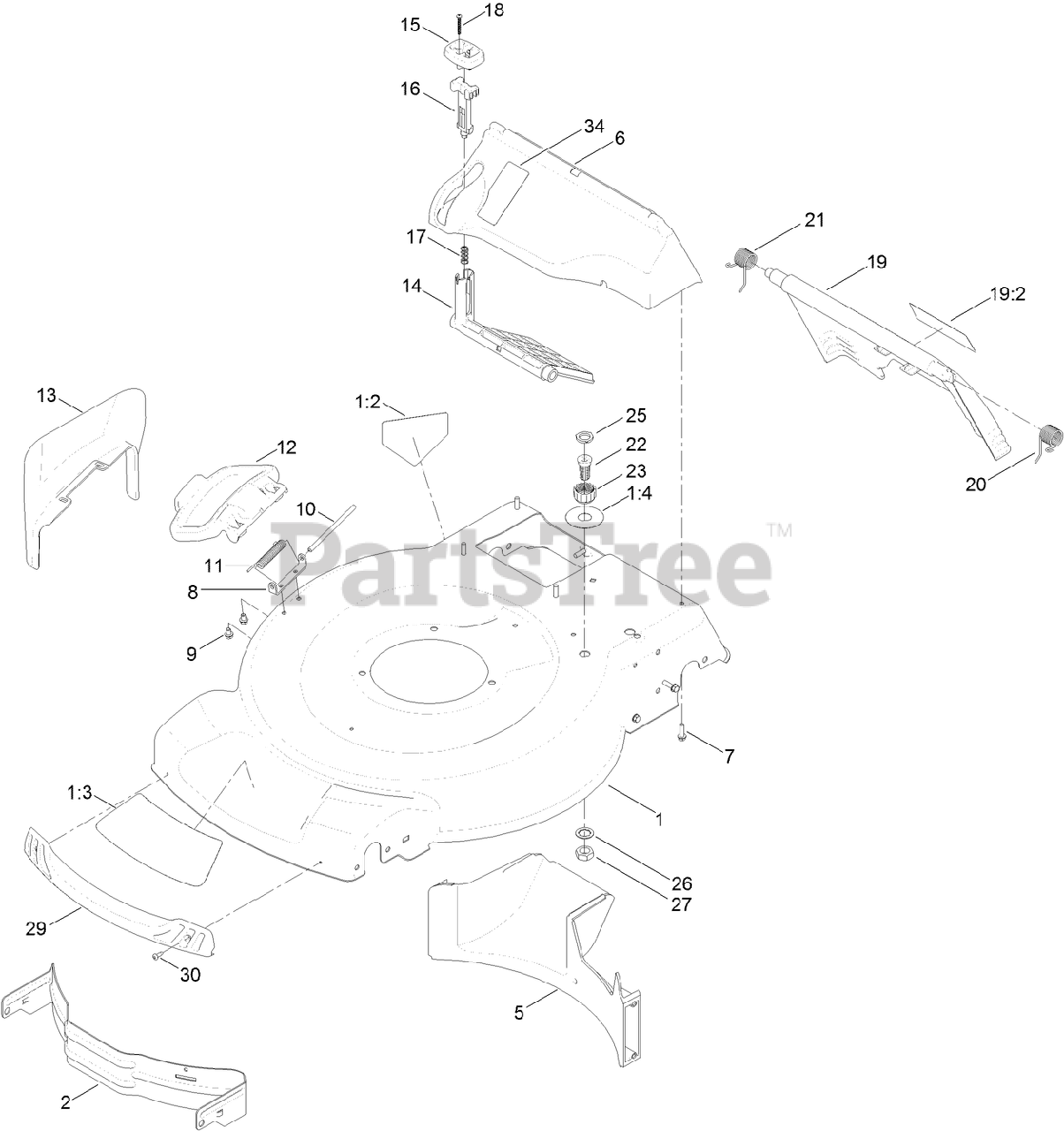 Deck, Side Chute and Rear Door Assembly Parts Diagram