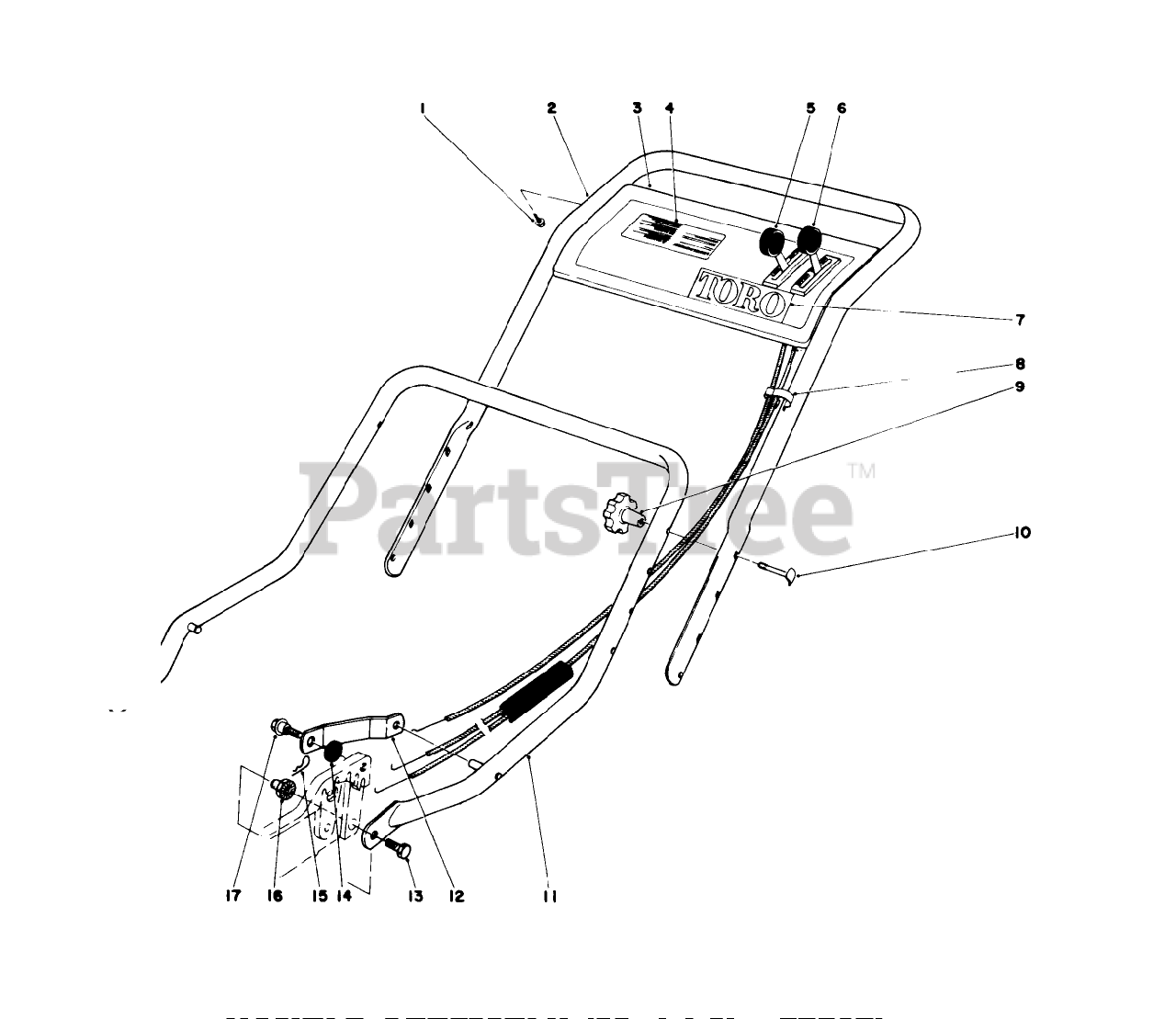 20644 - Toro Walk-Behind Mower (SN: 007000001 - 007999999) (1977) Handle Assembly (model No. 20517) Parts Diagram