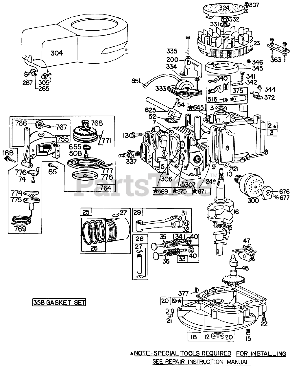 Engine Briggs Stratton Model No. 92908-2054-01 Parts Diagram