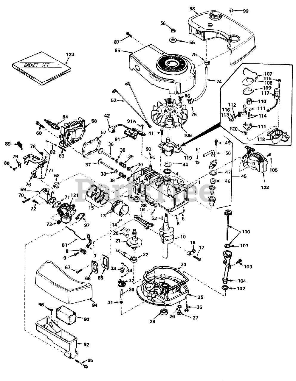 Note: Indicates items included in Gasket Set part no. 33906