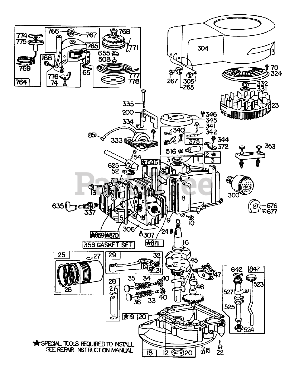 Note: Indicates items included in Gasket Set part no. 391662.