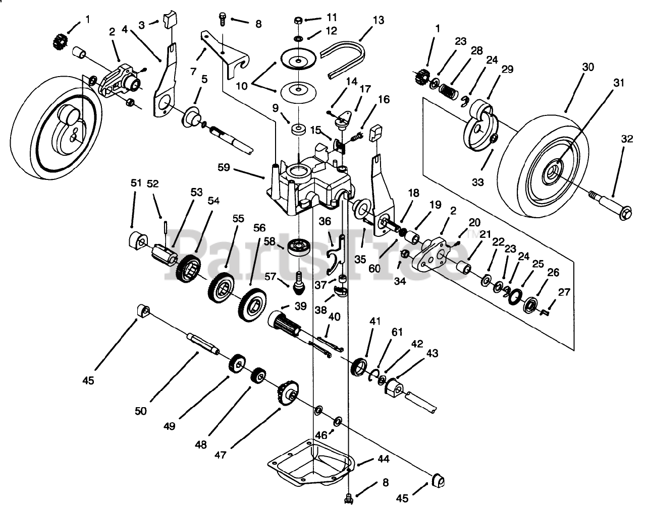 20766 B - Toro 53cm Recycler Walk-Behind Mower (SN: 049000001 - 049999999) (1994) Gear Case Assembly Parts Diagram