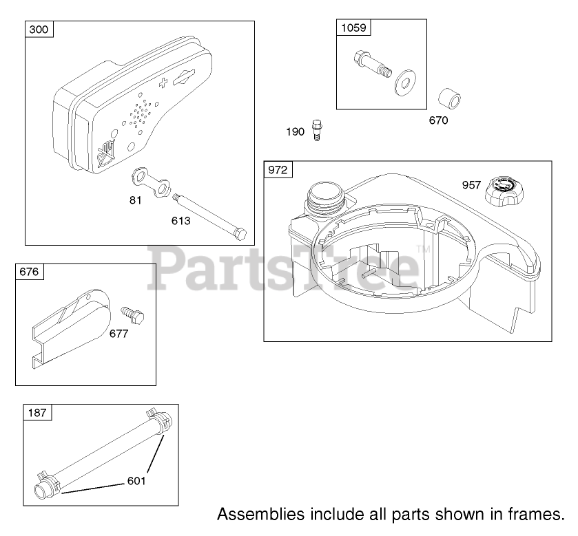 Muffler and Fuel Tank Assembly Briggs and Stratton Model 12H802-1720-B1 Parts Diagram
