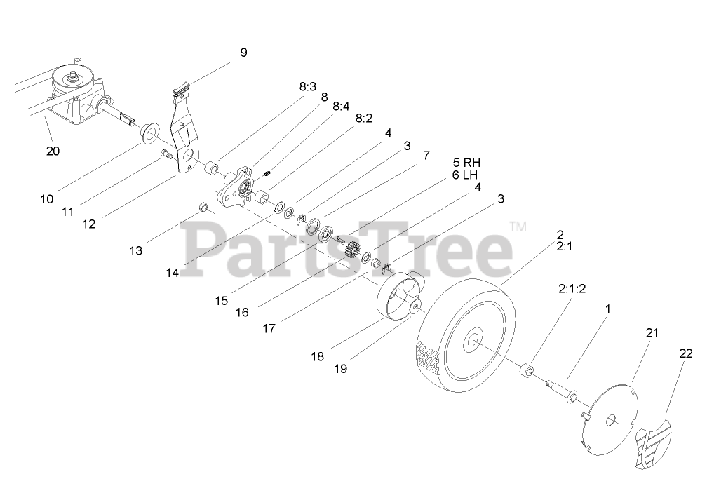 20781 - Toro 53cm Super Recycler Walk-Behind Mower (SN: 250000001 - 250999999) (2005) Gearcase and Wheel Assembly Parts Diagram