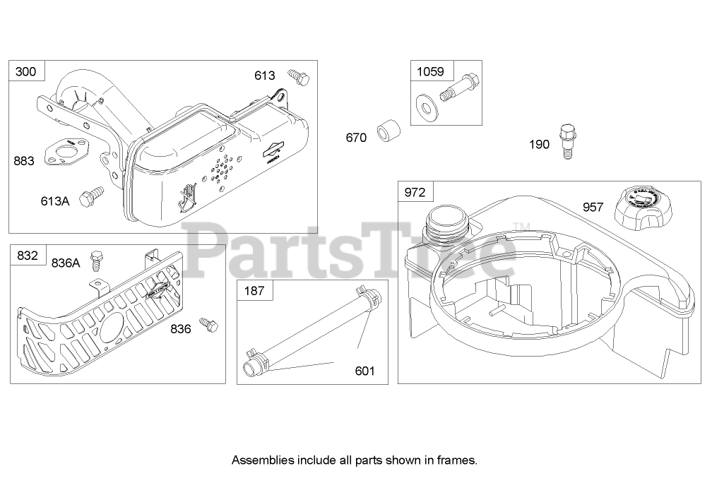 Muffler and Fuel Tank Assembly Briggs and Stratton 122607-0116-E1 Parts Diagram