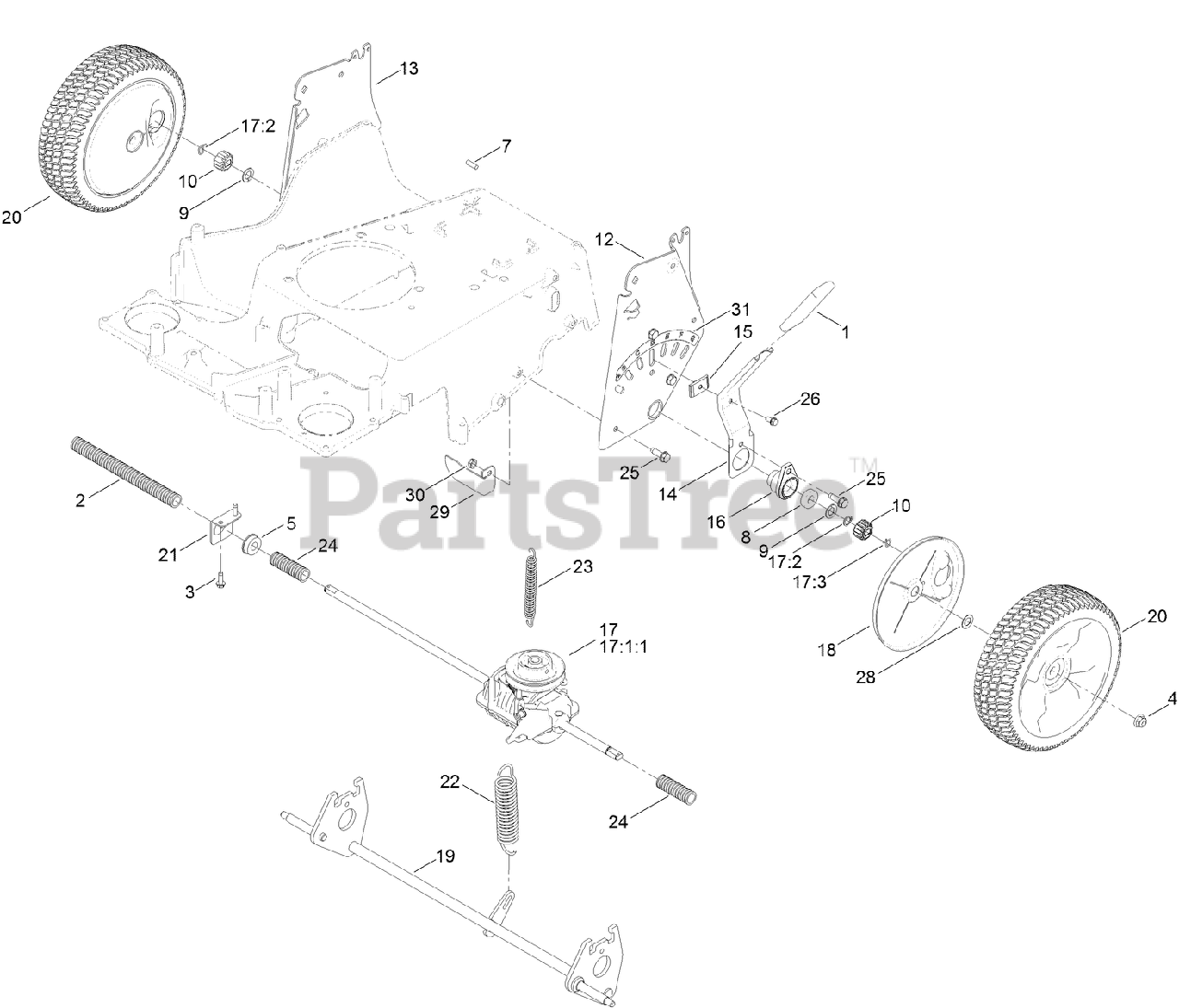 Rear Wheel and Height-of-Cut Assembly Parts Diagram