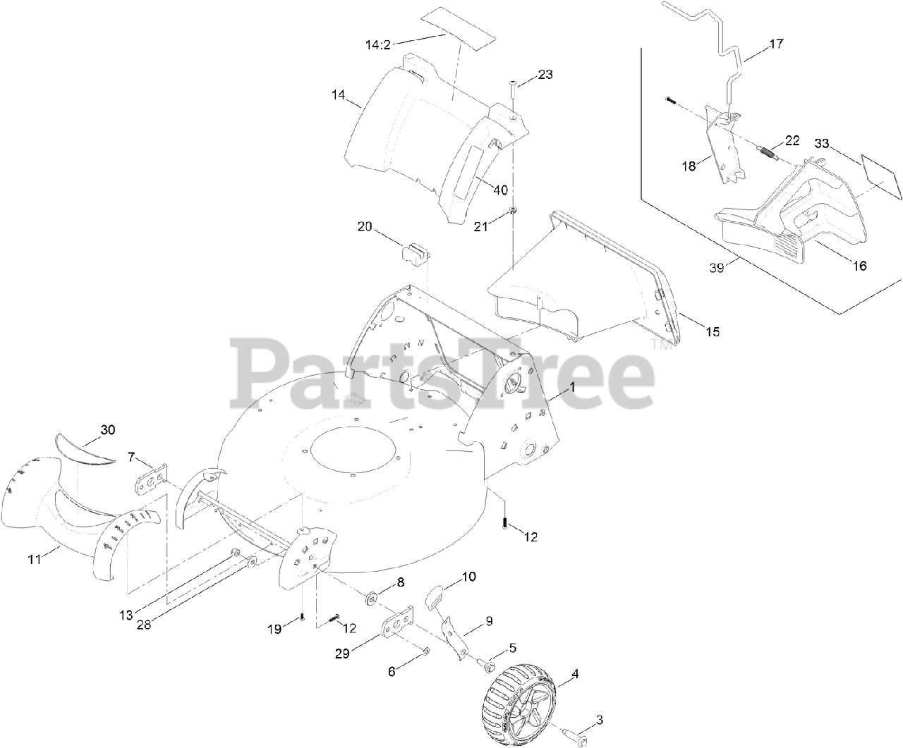 Housing, Front Wheel and Rear Door Assembly Parts Diagram