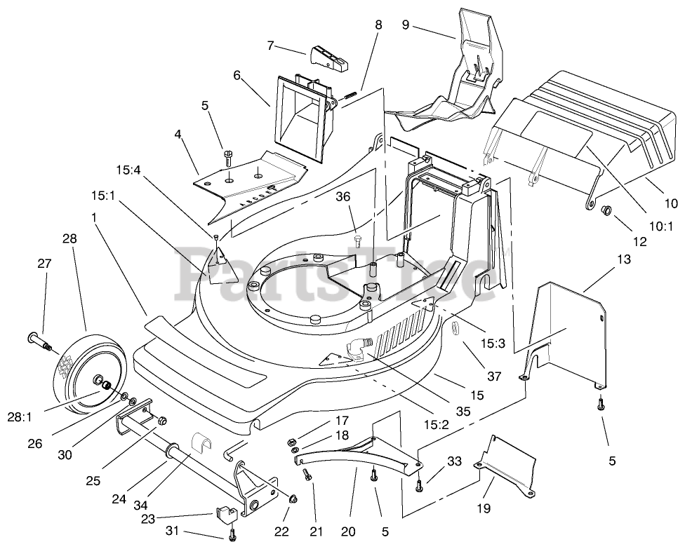 21012 - Toro 43cm Recycler Walk-Behind Mower (SN: 089000001 - 089999999) (1998) Housing Assembly Parts Diagram