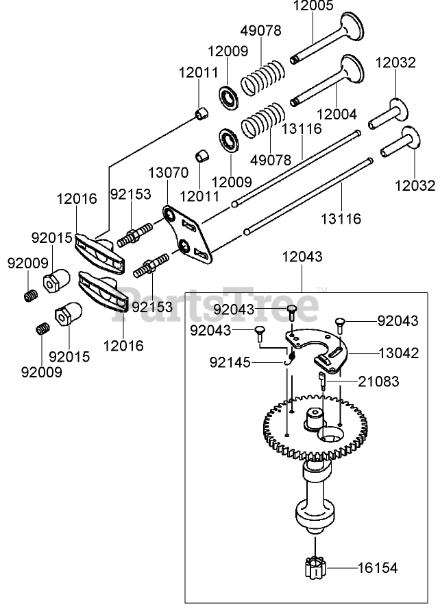 Valve and Camshaft Assembly Kawasaki FJ180V-AS28 Parts Diagram