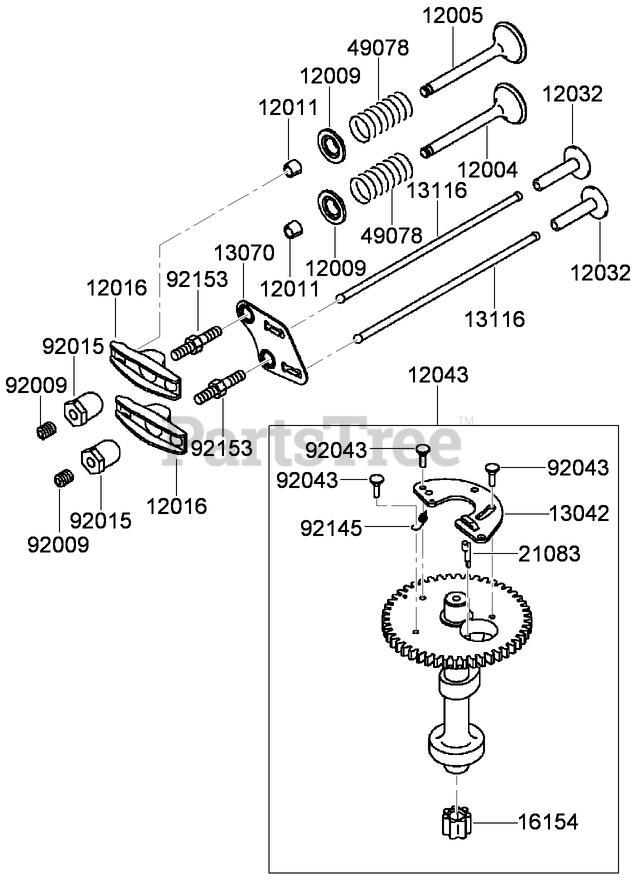 Valve and Camshaft Assembly Kawasaki FJ180V-AS58 Parts Diagram
