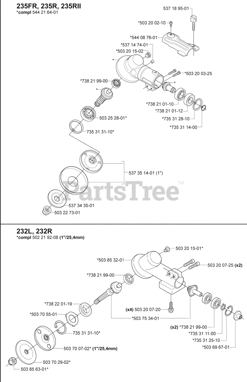 232 L - Husqvarna String Trimmer (2007-01) GearBox Parts Diagram
