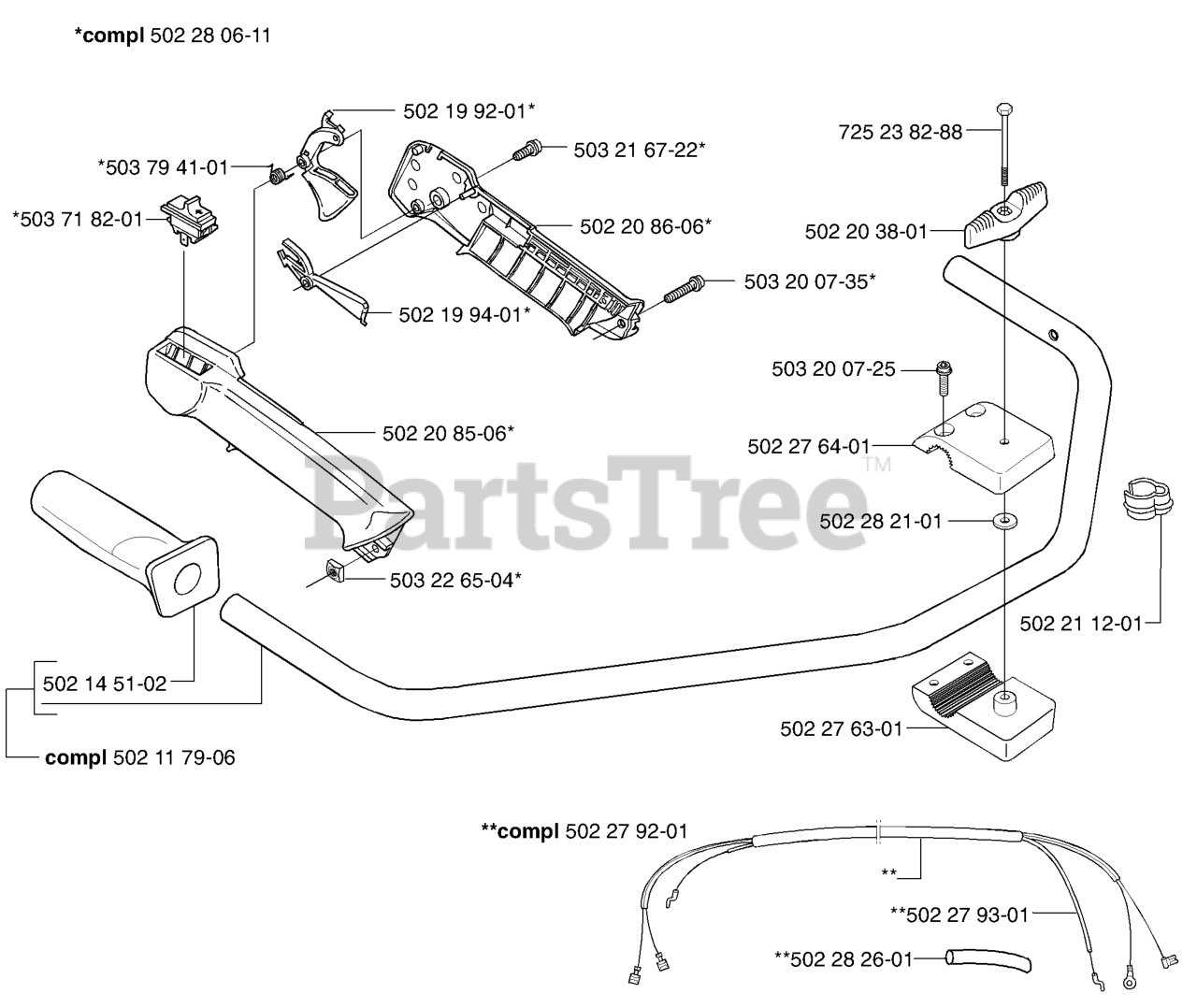 240R / 245R Throttle / Handle Parts Diagram