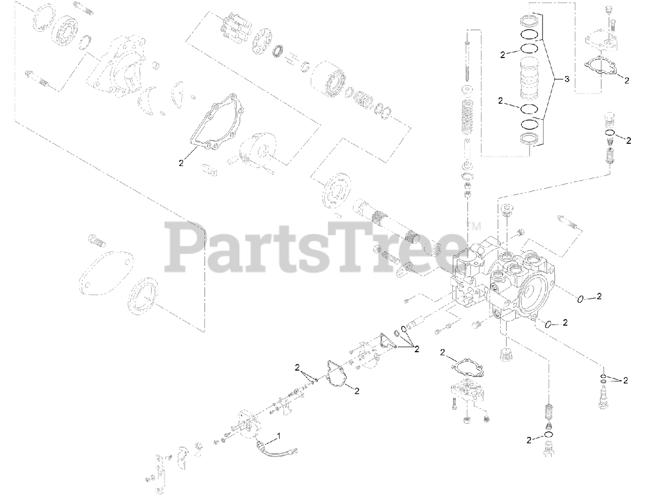 25430 W (RT 600) - Toro Trencher (SN: 315000501 - 315999999) (2015) Rear Pump Assembly Tandem Pump No. AU125034 Parts Diagram