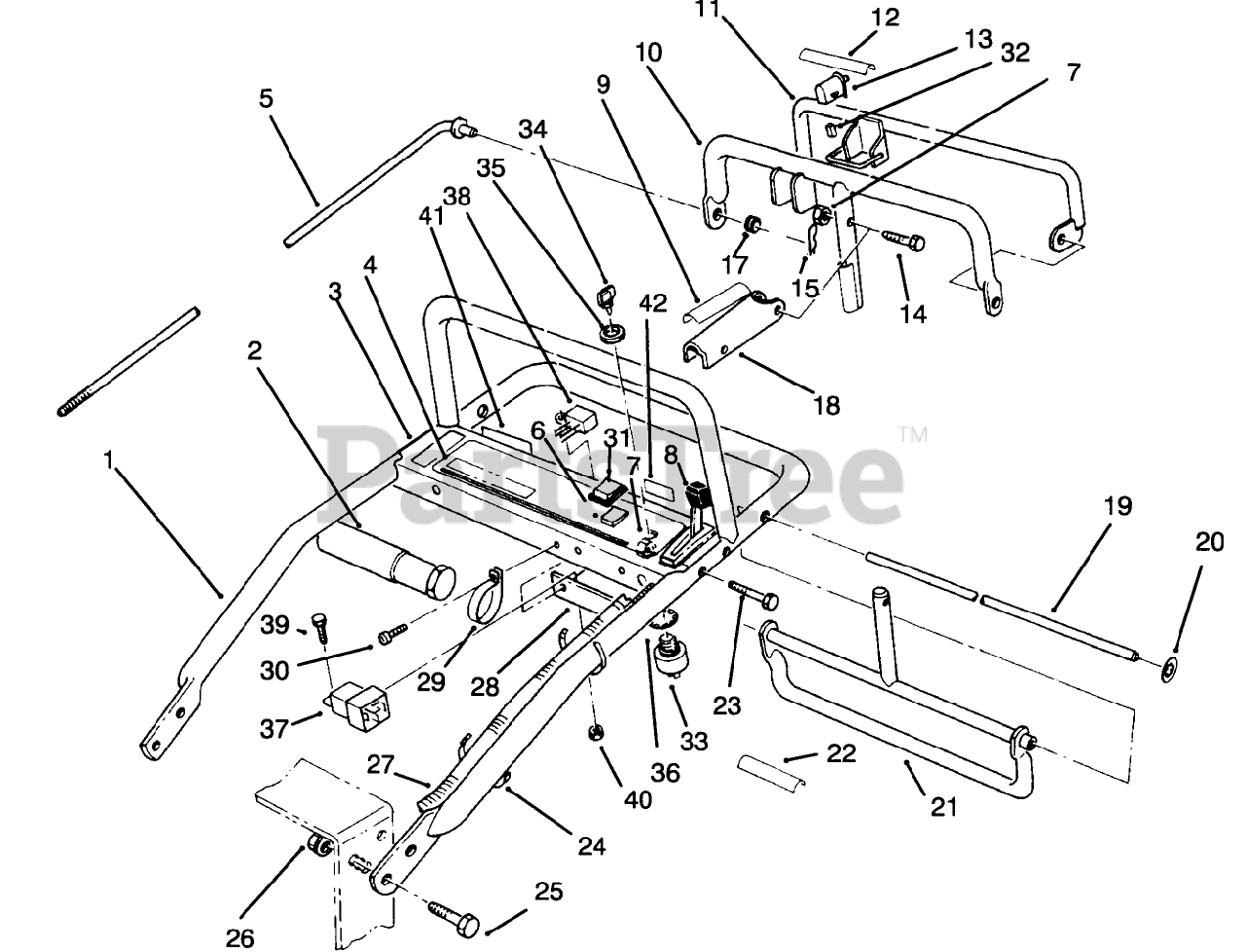 30156 - Toro ProLine Walk-Behind Mower, Gear Drive, 12.5hp (SN: 049000001 - 049999999) (1994) Handle Assembly Parts Diagram
