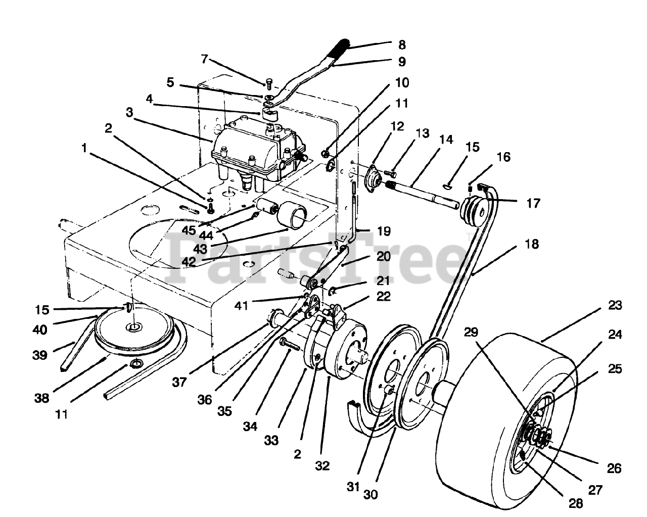 30157 - Toro ProLine Walk-Behind Mower, Gear Drive, 12.5hp (SN: 049000001 - 049999999) (1994) Axle Assembly Parts Diagram