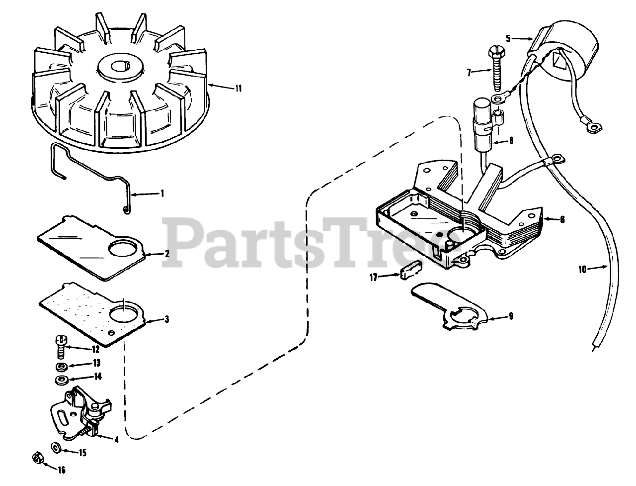 Note: The complete magneto is not available as an assembly. The magneto number is shown for reference purposes only. Order component parts individually, as shown in parts list.