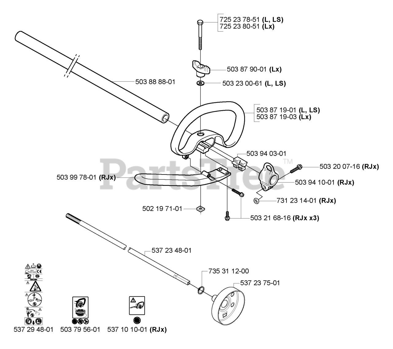 323 L - Husqvarna String Trimmer (2007-01) Shaft/Tube/Handle Parts Diagram