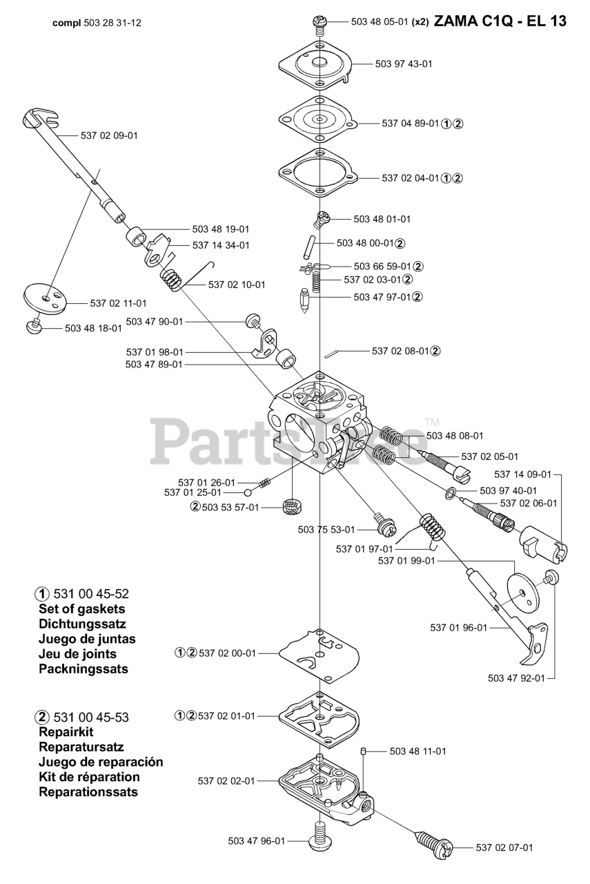 Note: Included IN P/N 531004552, Gasket Kit; P/N 531004553, Carburetor Kit