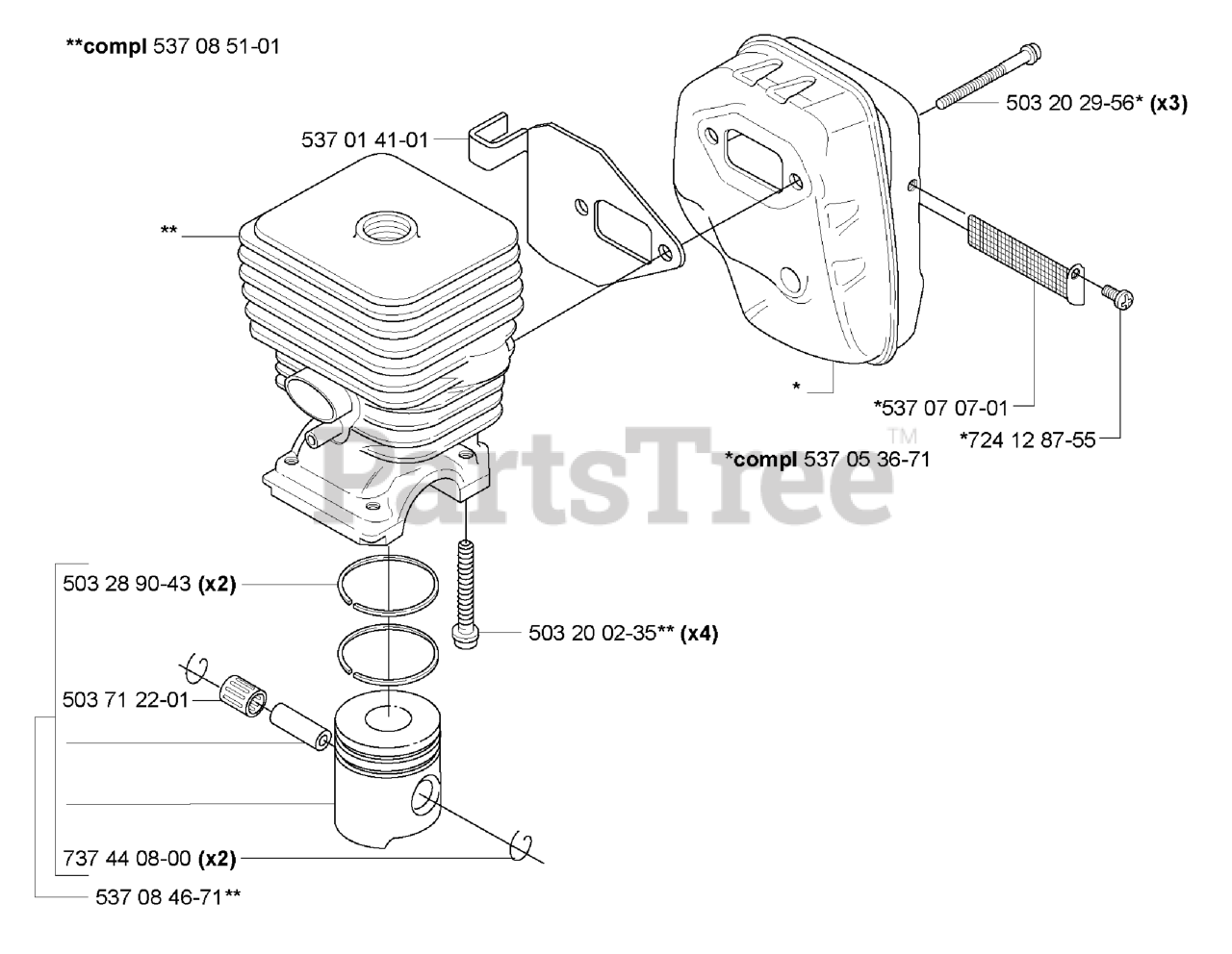 Cylinder/ Piston / Muffler Parts Diagram