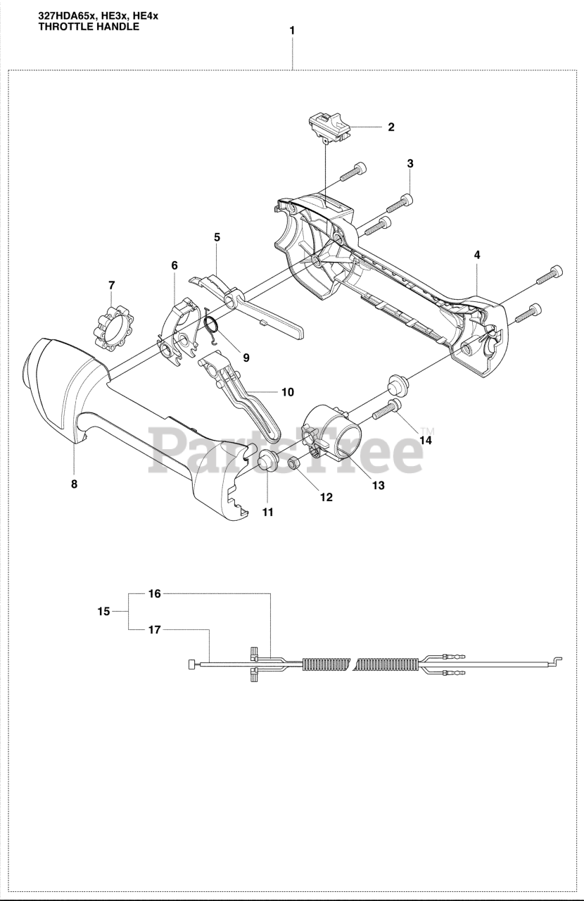 327 HE 4 X - Husqvarna Hedge Trimmer (2009-04) Throttle Handle Parts Diagram