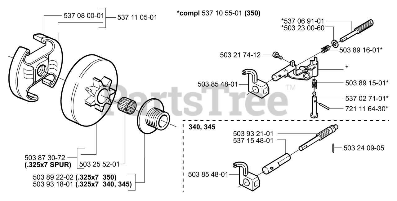 340 EPA - Husqvarna Chainsaw (2004-03) Clutch/Drum/Oil Pump Parts Diagram