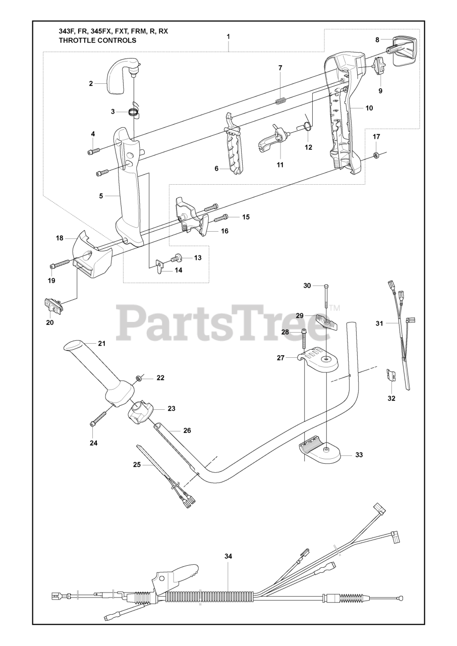 345 FXT - Husqvarna Brush Cutter (2008-05) Throttle Controls Parts Diagram
