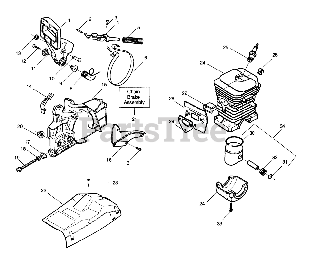 Chain Brake Assembly, Top Cover, Piston/Cylinder Parts Diagram