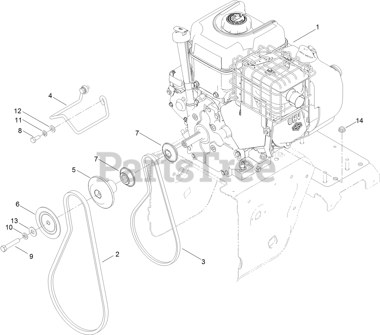 Engine and Pulley Assembly Parts Diagram