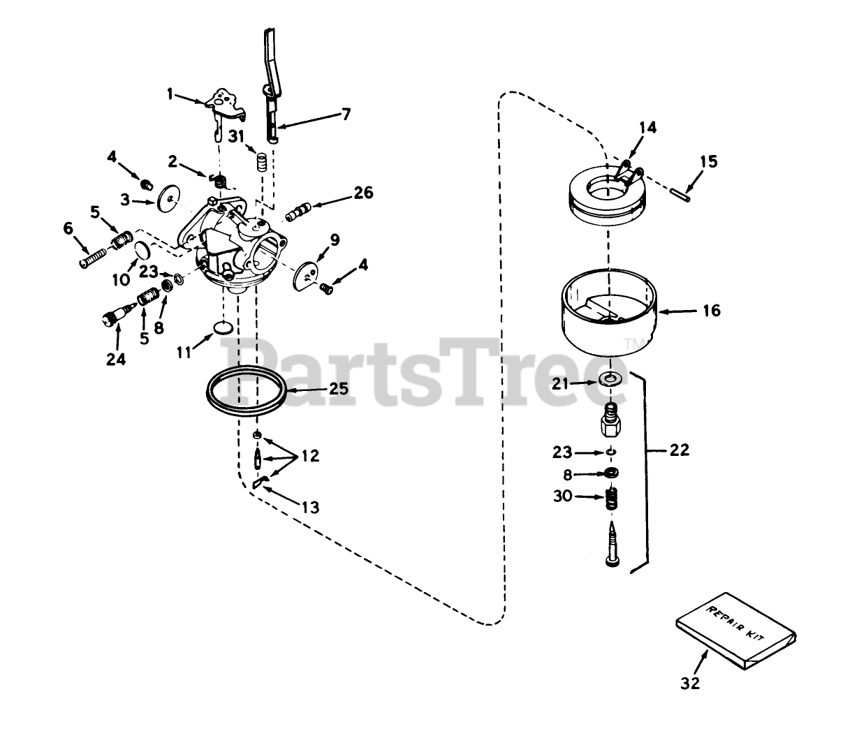 Note: Indicates items included in repair kit part no. 31840.