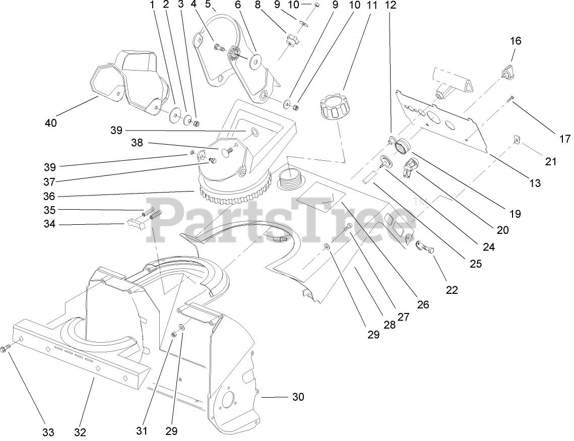 Housing, Upper Shroud and Chute Assembly Parts Diagram