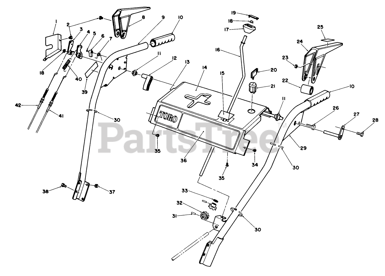 38580 (1132) - Toro 32" Power Shift Snow Thrower (SN: 008000001 - 008999999) (1988) Handle Assembly Parts Diagram
