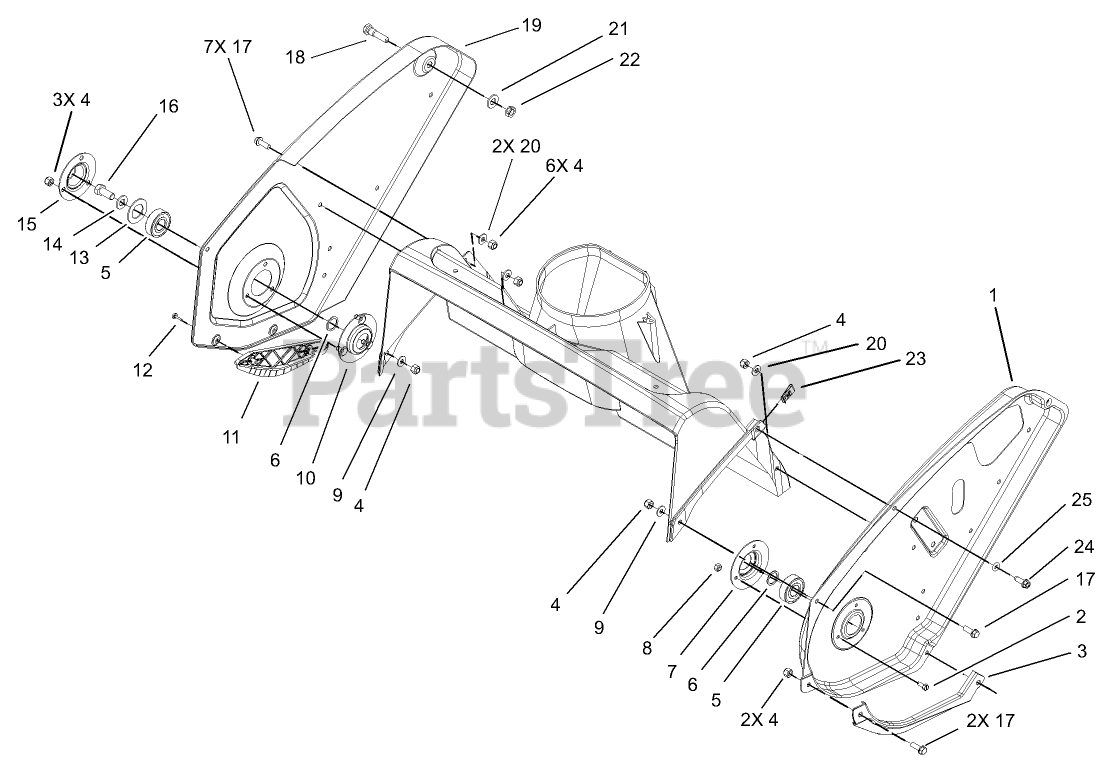 38602 - Toro 24" Snow Commander Snow Thrower (SN: 240000001 - 240999999) (2004) Upper Housing and Side Plate Assembly Parts Diagram
