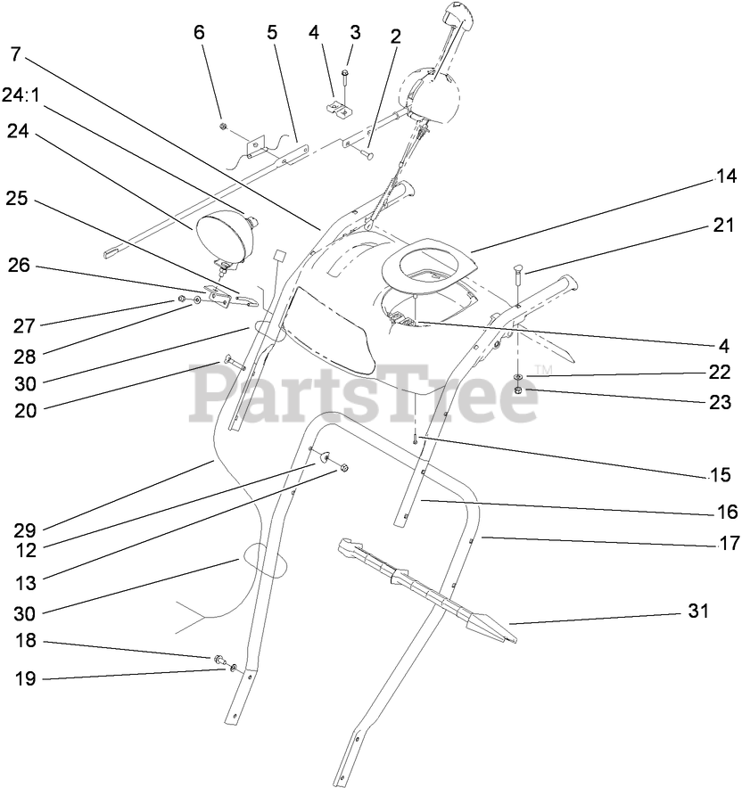 Handle and Control Assembly Parts Diagram